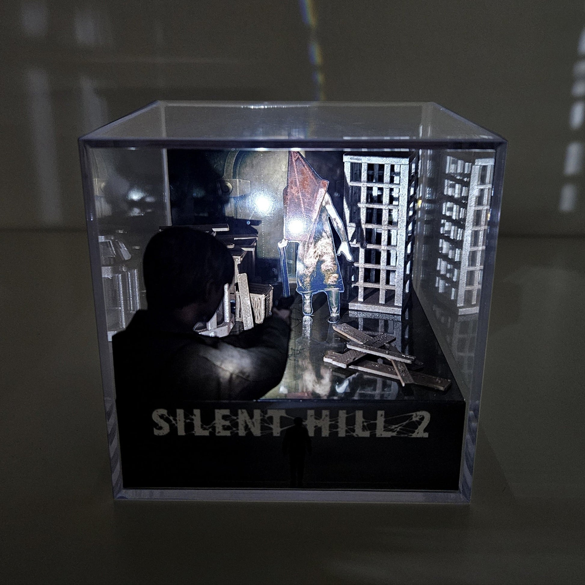 ¿A quién no le gustan los Leds? Con esta versión, cada cubo tiene incorporado una pequeña luz led de color blanca en la parte superior del diorama con que presionando su botón ON/OFF, podrás cambiar entre tres modos de luz (parpadeo rápido, parpadeo lento o luz fija).