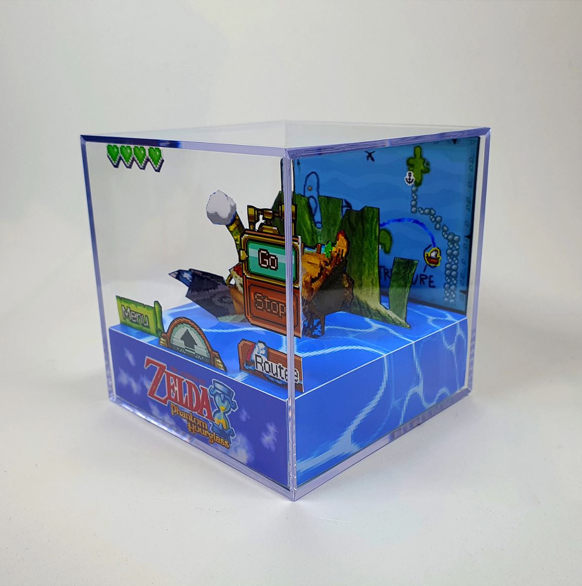 ¿A quién no le gustan los Leds? Con esta versión, cada cubo tiene incorporado una pequeña luz led de color blanca en la parte superior del diorama con que presionando su botón ON/OFF, podrás cambiar entre tres modos de luz (parpadeo rápido, parpadeo lento o luz fija).